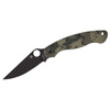 Elődjéhez hasonlóan a Spyderco Military 2 is egy kompromisszumok nélküli zsebkés, amely minden helyzetben megbízhatóan teljesít. Ebben az álcázott megjelenésű változatban a kés fekete, laposra csiszolt pengével rendelkezik, amely porkohászati CPM-S-30V , csúszásmentes G10-ből készült markolati pikkelyekkel, valamint a maximális rugalmasságot biztosító, négy irányban átalakítható klipszszel. Természetesen a Spyderco a bevált kezelési koncepcióra támaszkodik hüvelykujjas nyitással és kompressziós zárral. Az USA-ban készült.