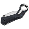 Gyorsan, gyorsabban, Veloc! A Boker lendületet ad a Magnum Velocnak, és rugós nyitómechanizmussal látja el a Karambit kést. A flipper vagy az opcionális hüvelykujjas szegecs a szükséges hátszéllel nyitja az agresszív 440B Wharncliffe pengét, amely gyöngyfúvásos kivitelben készült, míg a linerlock megbízhatóan rögzíti az asszisztált nyitószerkezetet. A hajlított markolat texturált G10 pikkelyekkel kiváló fogást biztosít, és a markolat végén található jellegzetes gyűrűben végződik, amelyet eredetileg a kés kisujjhoz való rögzítésére szántak, de nyakláncnyílásként is használható. A kék eloxált elemek, mint például a forgáscsavar mentén lévő gyűrű és a markolatcsavarok modern hangsúlyokat adnak a klasszikus délkelet-ázsiai késformához. Tip-up klippel (r).