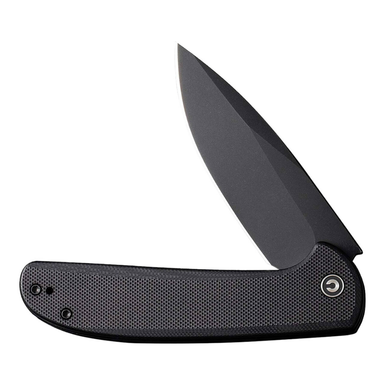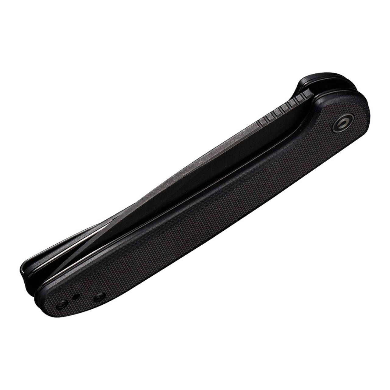 Sziklaszilárd, sallangmentes zsebkés, amely a teljesítmény tekintetében a CIVIVI DNS-ével van felszerelve. A Nitro-V anyagból készült golyóscsapágyazott drop point penge simán és puhán nyílik flipperrel, és a liner lock segítségével záródik. A teljesen fekete EDC mappa markolatának anyaga G10, amely a kiegyensúlyozott érzetet és az alacsony súlyt ötvözi. Megfordítható tip-up klippel.