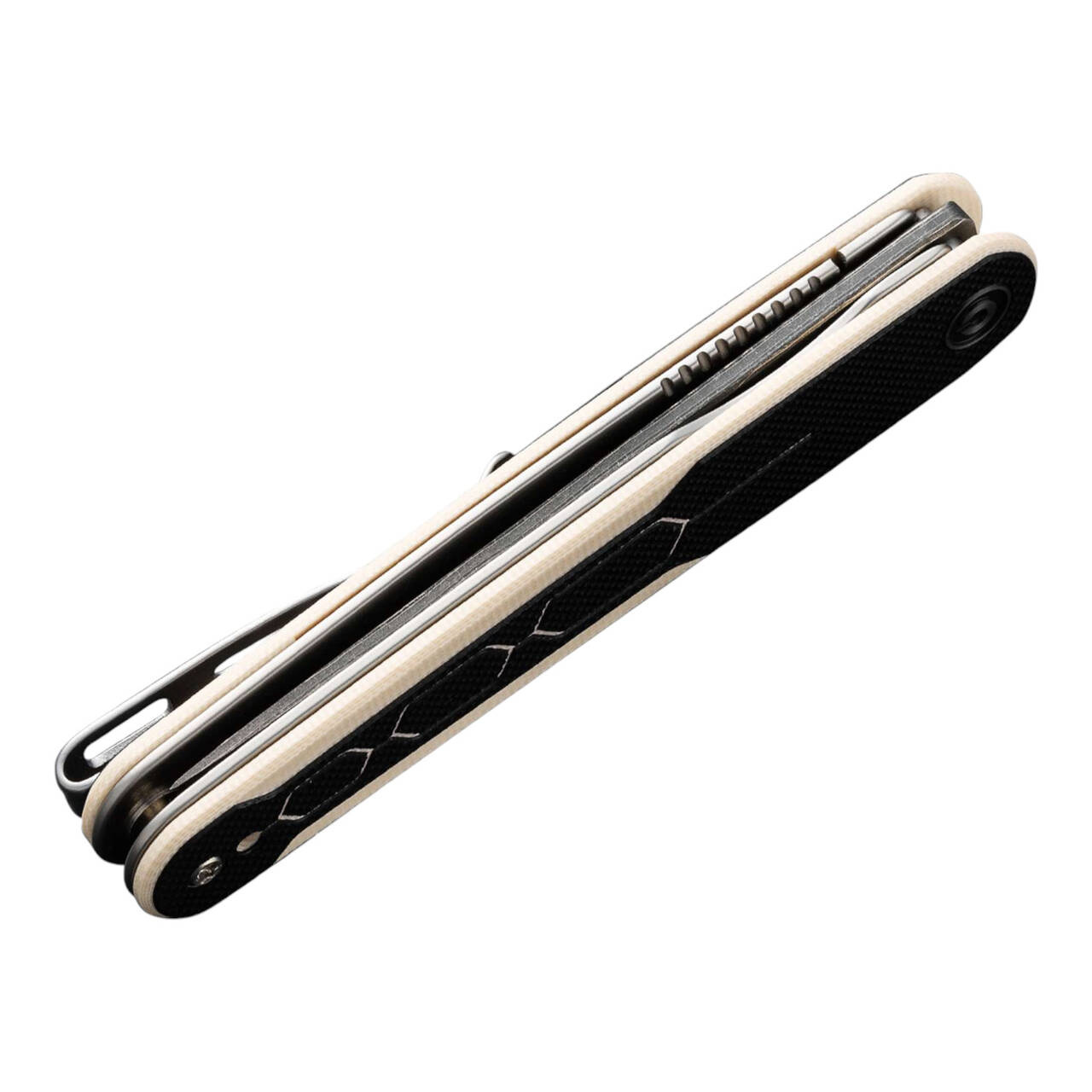 A CIVIVI bemutatja a KwaiQ-t, amelyet egy japán stílusú úri kés ihletett. A Rafal Brzeski által tervezett formaterv az eleganciát és a karcsú megjelenést az abszolút praktikummal ötvözi. Ennek oka a finom damaszkuszból készült golyóscsapágyazott tanto penge és a maratott G10-ből készült textúrált markolat, amely a krémfehér és a fekete szín ízléses keverékében pompázik. A zsebkést a diszkrét flipperrel lehet kinyitni, míg a bélészár megbízhatóan a helyén tartja a pengét. Pontos vágások, maximális kontroll és időtlen elegancia, vagyis más szóval: KwaiQ. Megfordítható tip-up klippel.