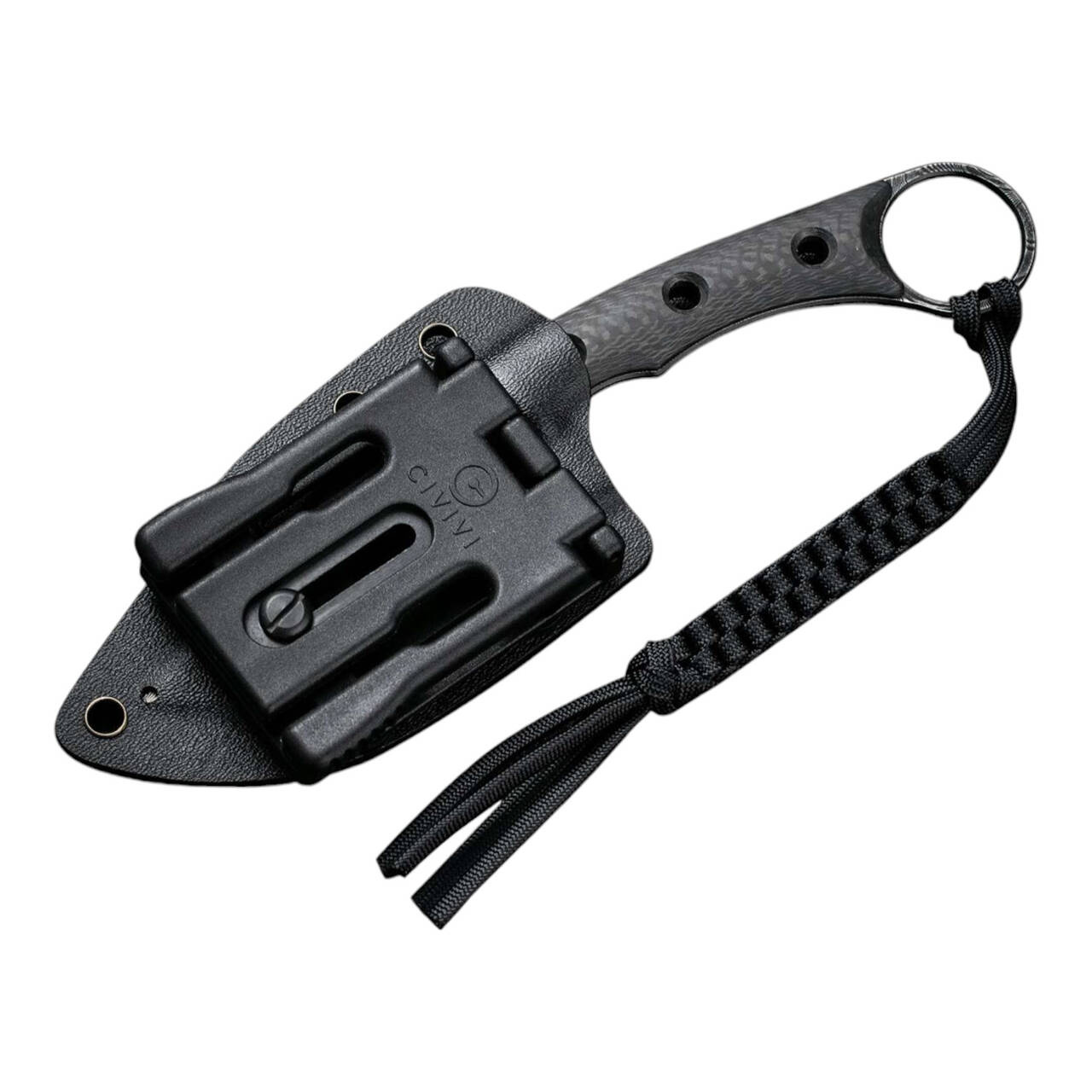 A városi mindennapi élet és a szabadban egy késben kombinálva - a fix CIVIVI Midwatch sokoldalú késként, taktikai karambit kinézetű taktikai késként kezeli ezt az igényes egyensúlyozást. A csomagok felnyitásától a kisebb fák faragásáig a Damaast penge minden feladatot ragyogóan megold. A masszív konstrukció és a jimpings biztosítja a szükséges stabilitást és kontrollt vágás közben. A három üreges szegeccsel ellátott gömb alakú karbon markolat biztos fogást biztosít, míg a markolat végén található, a karambit késekre jellemző gyűrű további rögzítési és tartási lehetőségeket tesz lehetővé. Egyénre szabott Kydex tokkal és szíjjal szállítjuk.