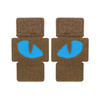 Az M-Tac Tiger Eyes Patch-et úgy tervezték, hogy a szokásos tépőzár helyett egy MOLLE tartóra lehessen rögzíteni. A kép fényt halmozó anyagból készült, amely világít a sötétben.