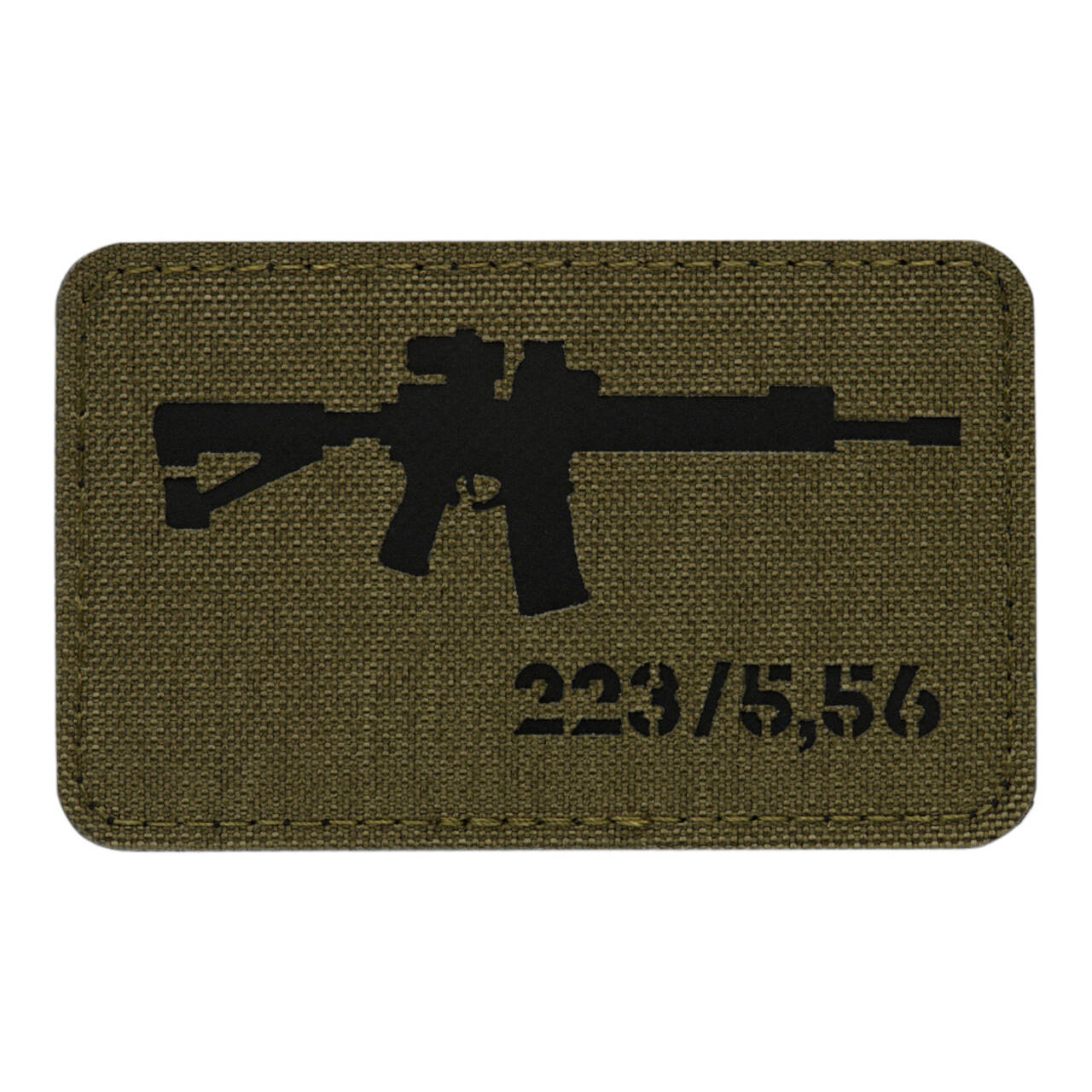 Az M-Tac AR-15 223/5,56 lézervágott AR-15 lézervágott tapasz - az úgynevezett „moráltapaszok” - tépőzáras hurok alapon (a tapasz hátuljára egy tépőzáras kampó van varrva) baseball sapkára vagy hátizsákra rögzíthető.