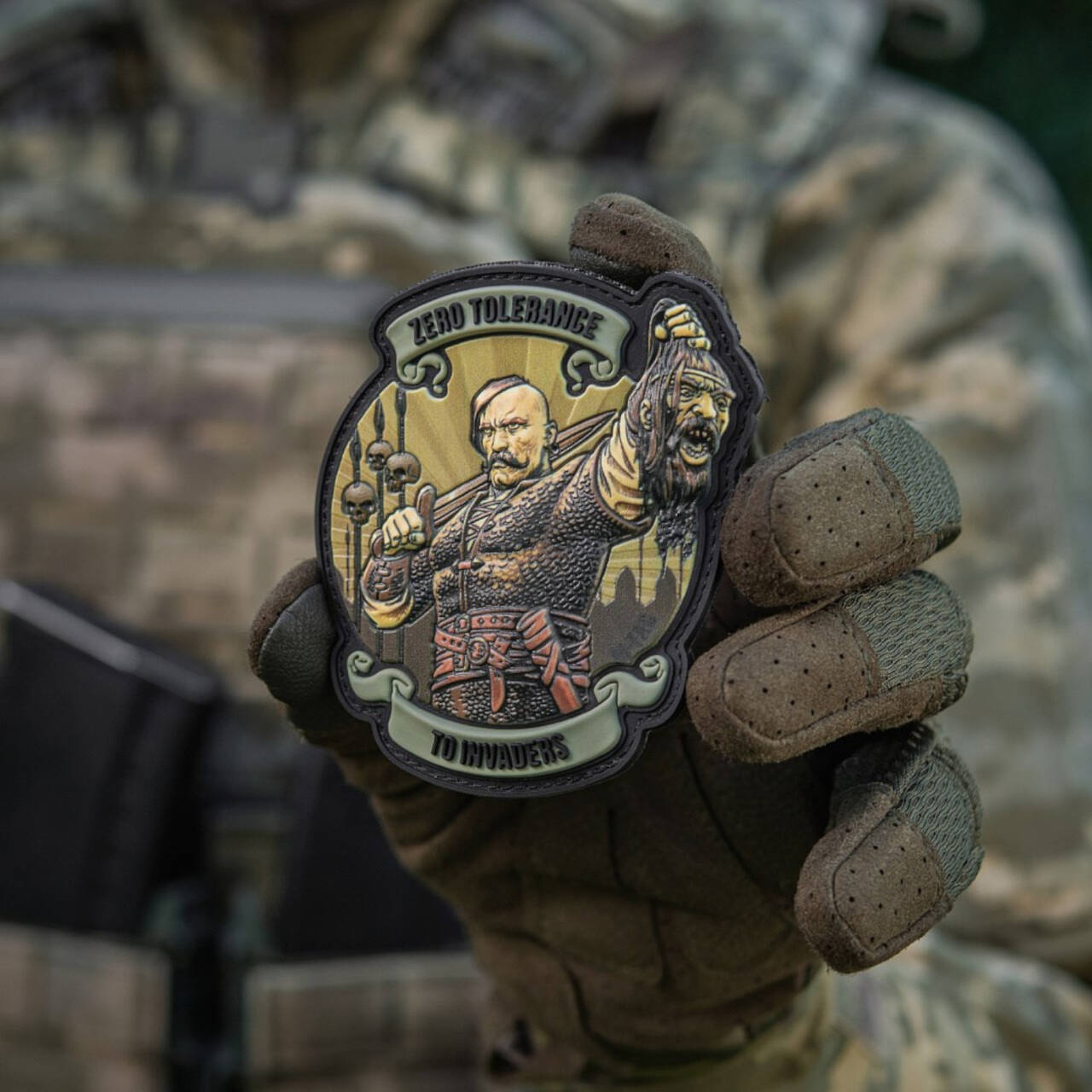 Az M-Tac „Zéró tolerancia” jelvénye őseink hősies korszakának szellemét tükrözi, és kifejezi a haza védelmének készségét a betolakodókkal szemben.