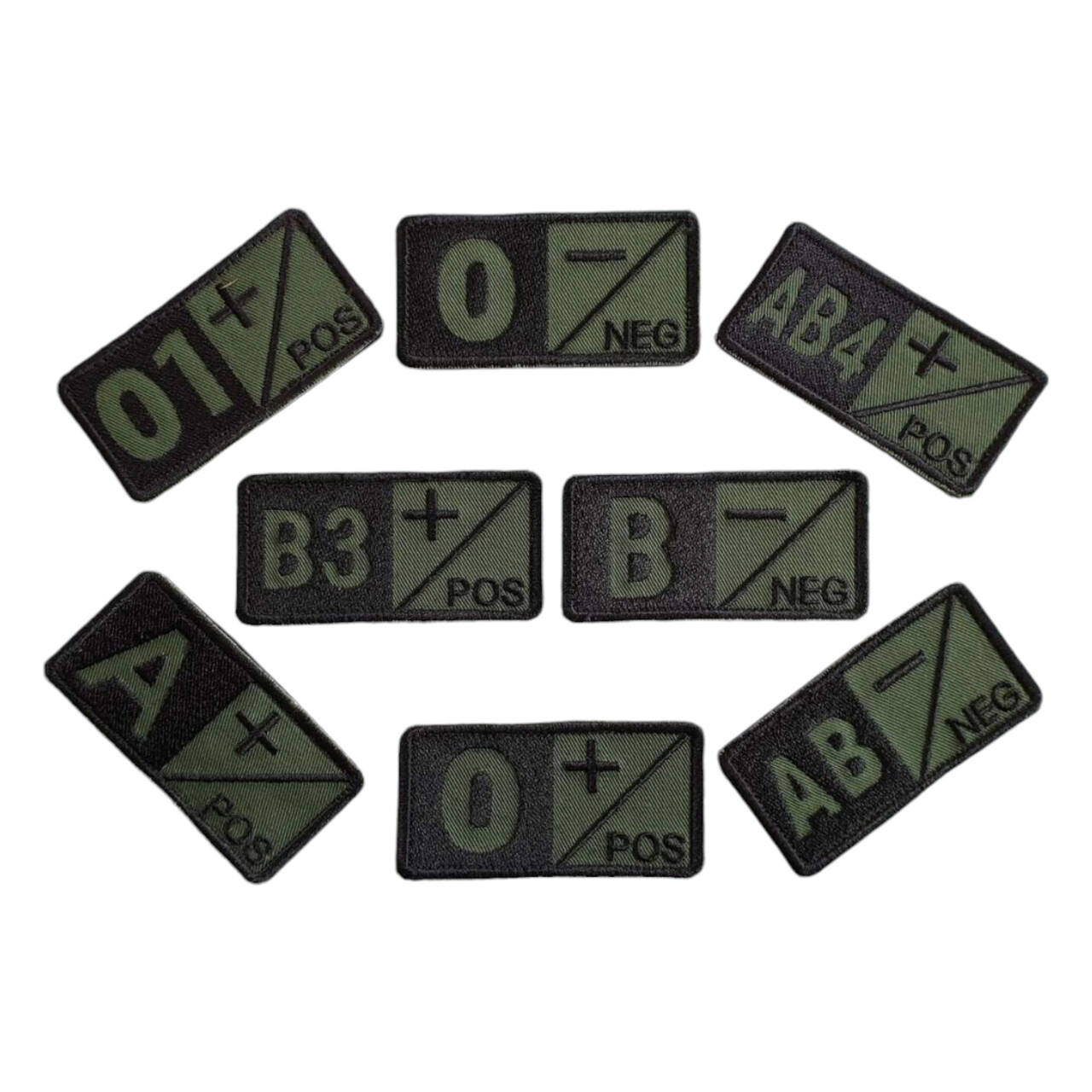 • BLOOD GROUP jelvény AB4+ hímzett oliveszínű hátlapon, fekete fonallal - horoggal és hurokkal rögzíthető - 7 x 3,5 cm