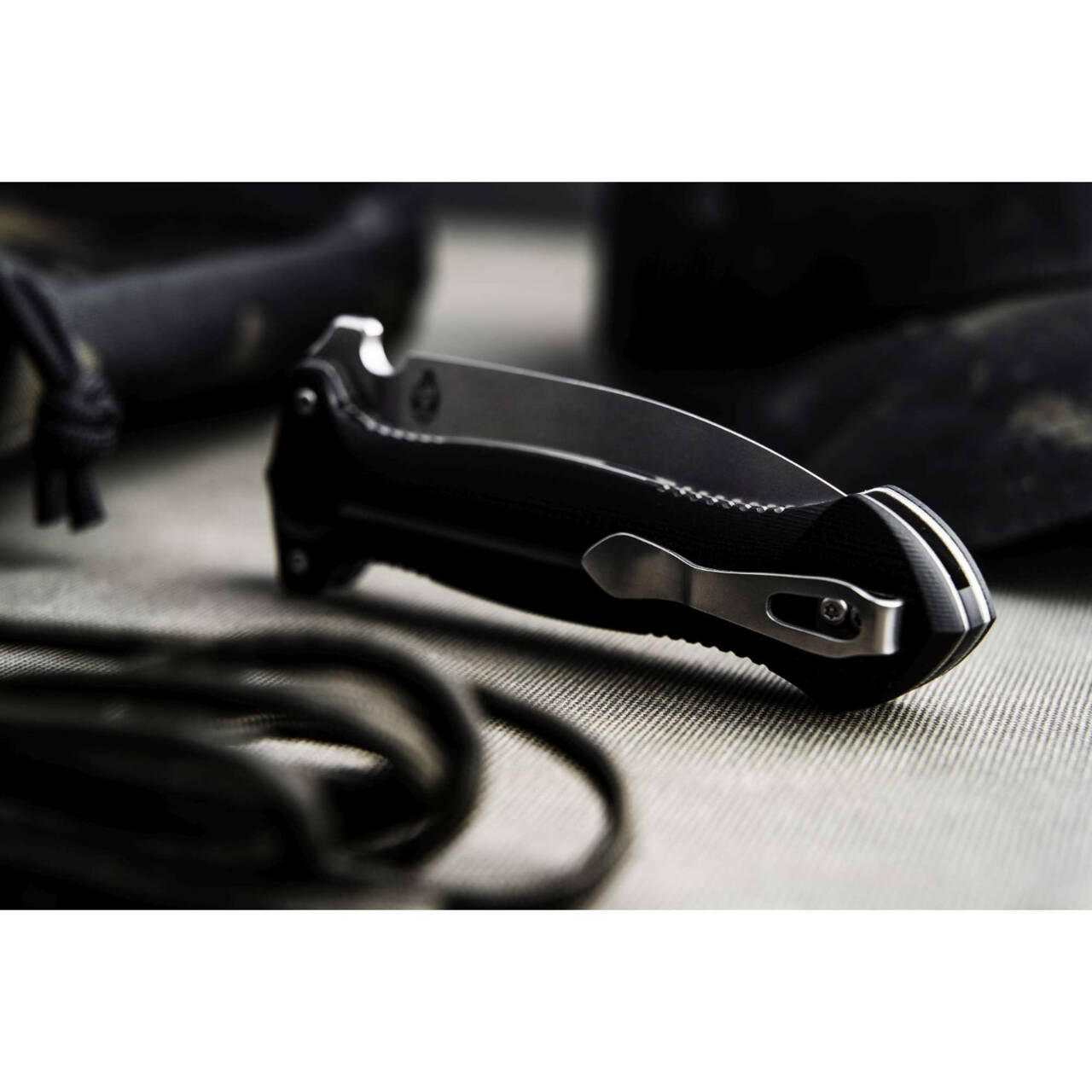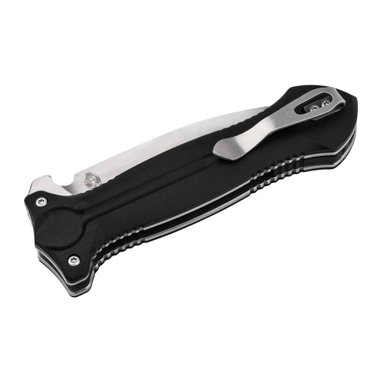 Nyitott állapotban a flipper teljesen eltűnik a markolatban a rendezett megjelenés érdekében. A csúszásmentes G10-ből készült ergonomikus markolati pikkelyek felül és alul további bütykökkel rendelkeznek, és biztonságos fogást garantálnak, míg a markolat központi mélyedése a penge üreges hornyát idézi. A linerlock, amely a pengét szilárdan rögzíti a helyén, gyönyörűen integrált - így a legkeményebb vágási munkáknál sincs más választás. Tip-up klippel (r) és kiváló minőségű nejlon tokkal szállítjuk.