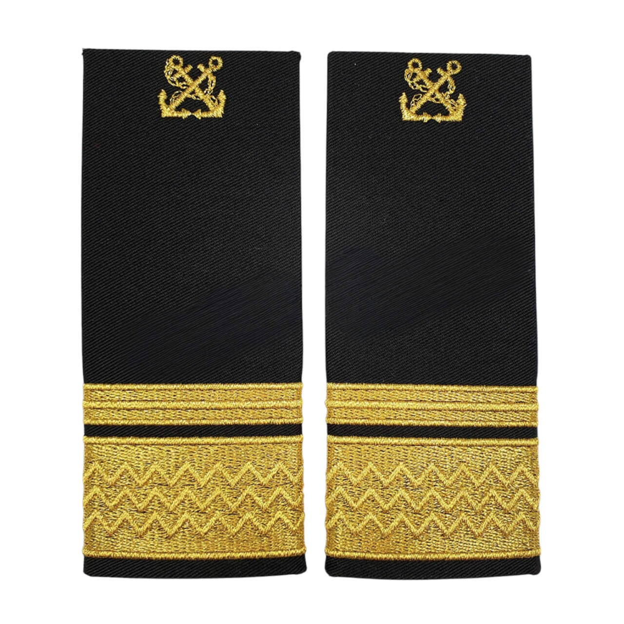 Grade capitan specialist - sef serviciu ANR brodate cu fir metalic auriu pe un suport confectionat din tesatura cu compozitia 65/35% bumbac/poliester de culoare neagra cu intaritura termocolata. Sunt potrivite pentru sefi servicii/birouri capitanii.