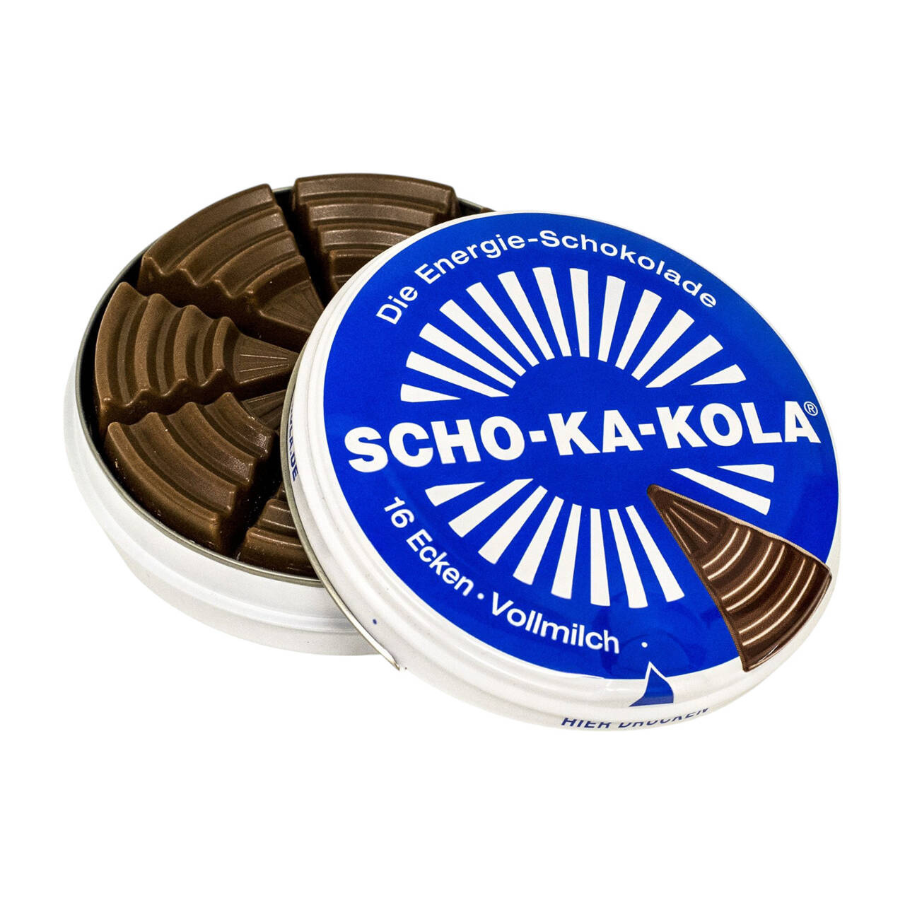 A SCHO-KA-KOLA már generációk óta gyönyörködtet a feltűnő kerek dobozban, a szemet gyönyörködtető küllős dizájnnal. Tartalmaz 16 gyengéden olvadó SCHO-KA-KA-KOLA SCHO-KA-KOLA sarokcsokoládét, amely klasszikus fekete vagy teljes tej ízesítéssel kapható. Akár savanykás, akár édes: mindkét változatot a kakaóból, kola dióból és kávéból származó természetes koffeint tartalmazó egyedi receptúra jellemzi. A koladió a SCHO-KA-KOLA-t különleges koffeines csokoládévá teszi. A kola dió a kola fa magja, amely főként Nyugat- és Közép-Afrikában található, és lényegesen több koffeint tartalmaz, mint a hagyományos kávé.