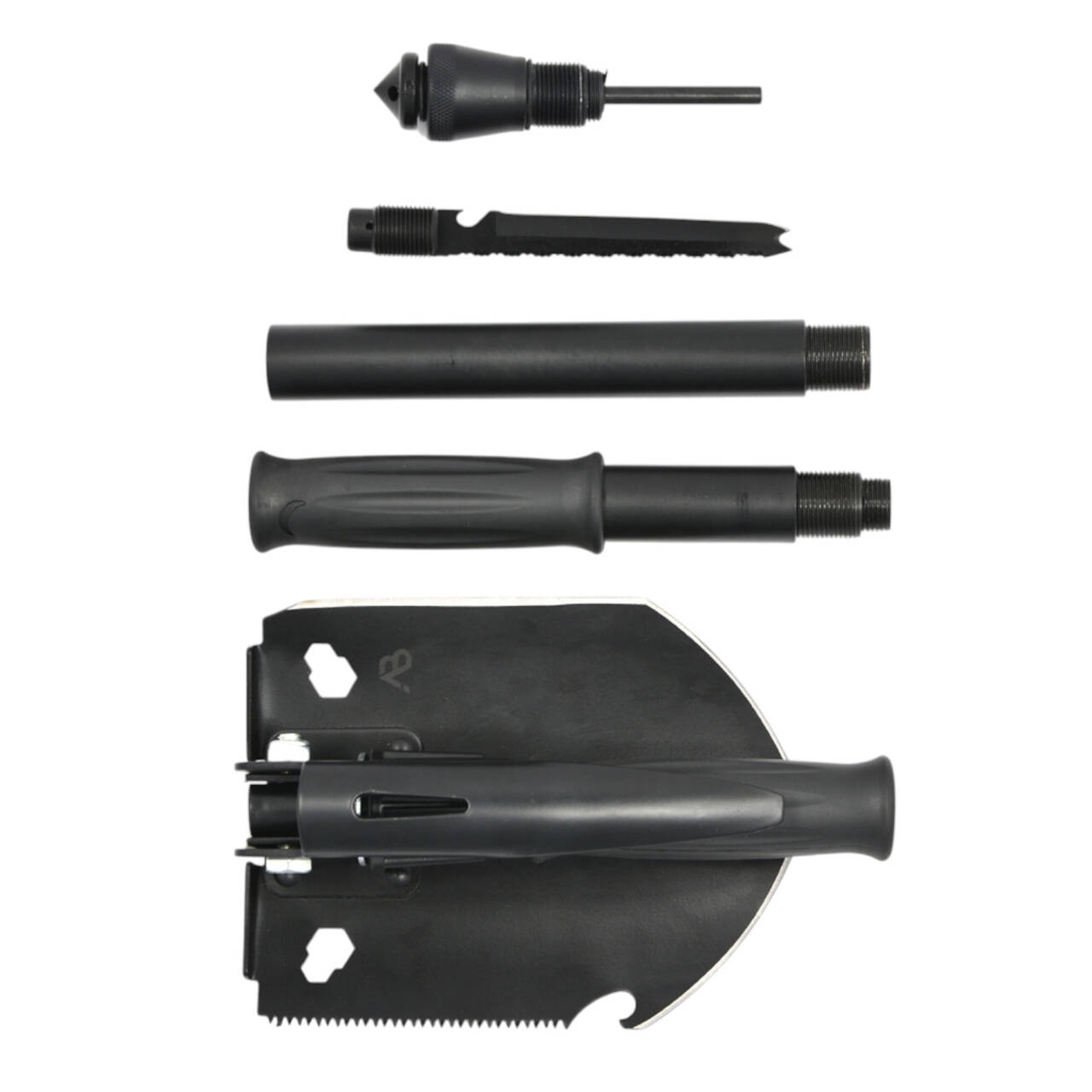 - lapátlapát egyik oldalán fűrészfogakkal és késpengével, lapátként, kapaként, kapaként, kalapácsként, fejszeként, csavarhúzóként használható.