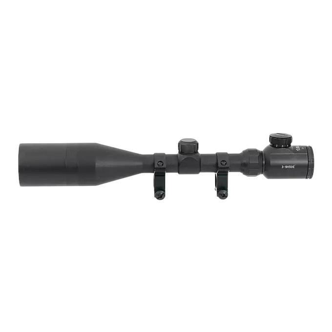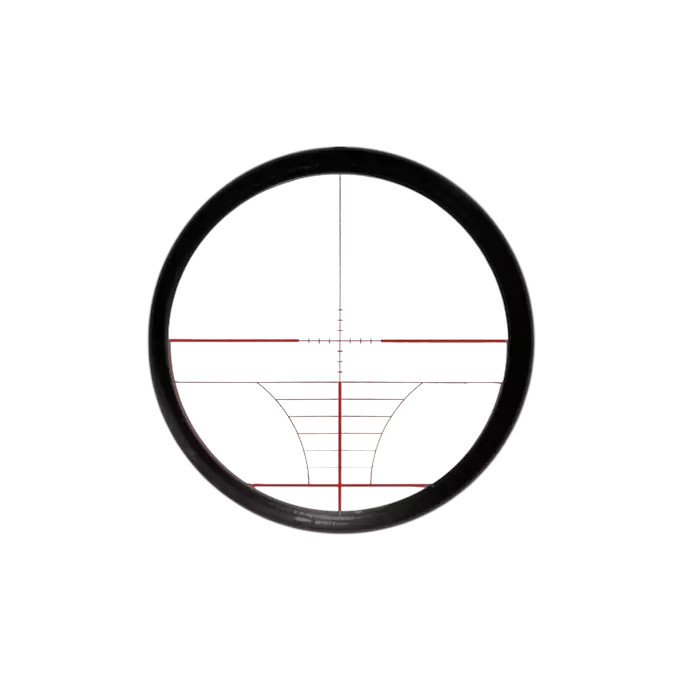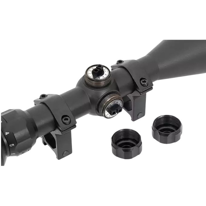A távcső fémből készült, piros és zöld színű háttérvilágítással, kereszt retikula kereszttel rendelkezik (10 fokozatban állítható háttérvilágítás intenzitása: 5 fok zöld és 5 fok piros színben).