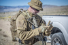 - A mellrészen két cipzáras zseb található, felettük tépőzáras panelek a patch-ek rögzítéséhez. A középső részen rangjelzési fül is helyet kapott.