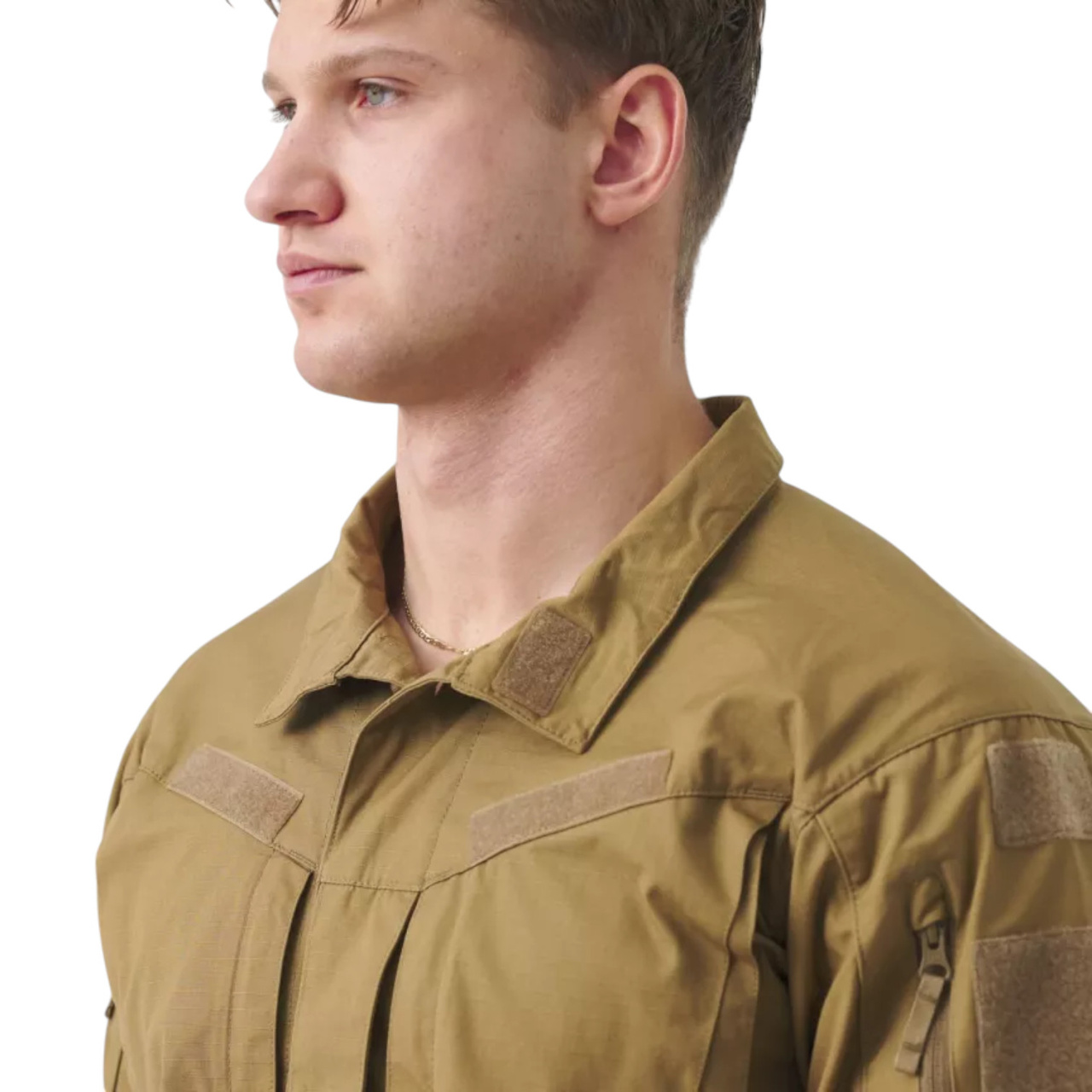 - Az ing testhezálló szabású, oldalsó VersaStretch® anyagbetétekkel. A klasszikus gallér könnyedén átalakítható álló gallérrá és hook&loop pánttal rögzíthető.