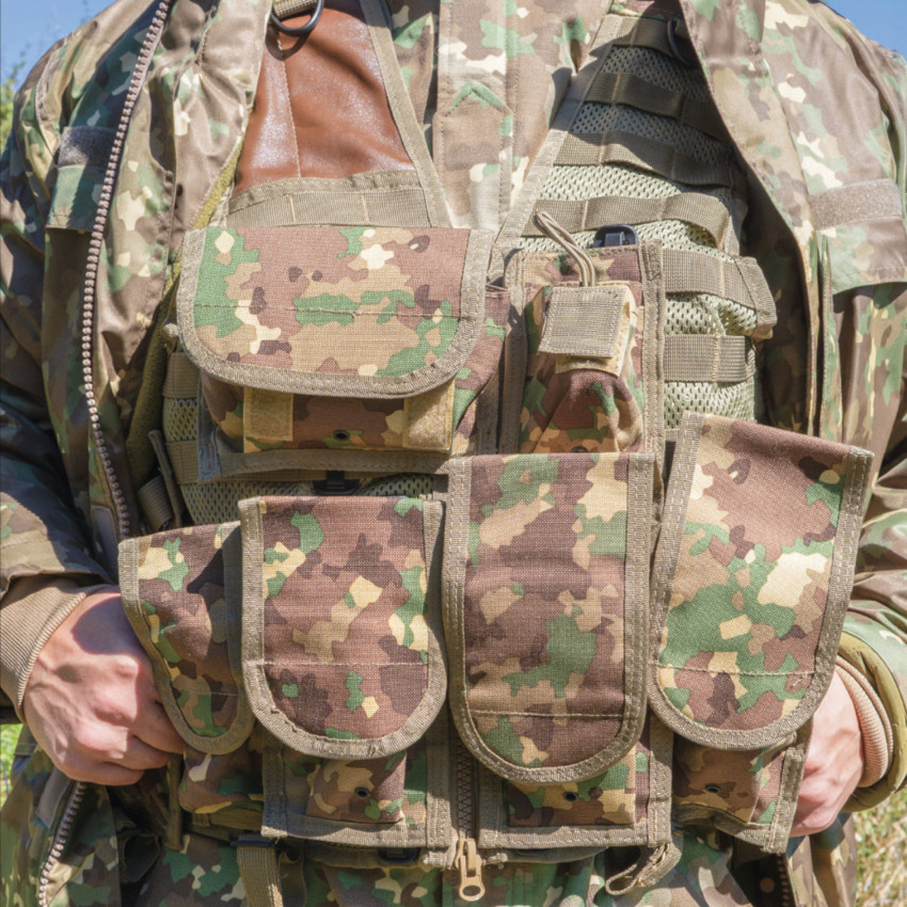 A hálós mellényalapra épülő román taktikai mellények moduláris rendszert kínálnak több levehető zsebbel, amelyek a felhasználó igényei szerint átrendezhetők.