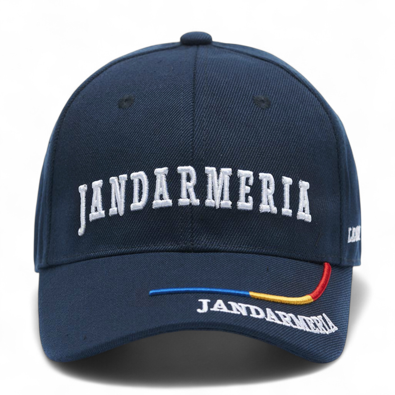 Prémium minőségű sapka A Román Csendőrség – IGJR, speciális akril anyagból készült sapkákhoz. Stílusos design tengerészkék színben, kiváló minőségű 3D hímzéssel az előlapon - fehér szöveg metálszürke (ezüst) körvonallal.