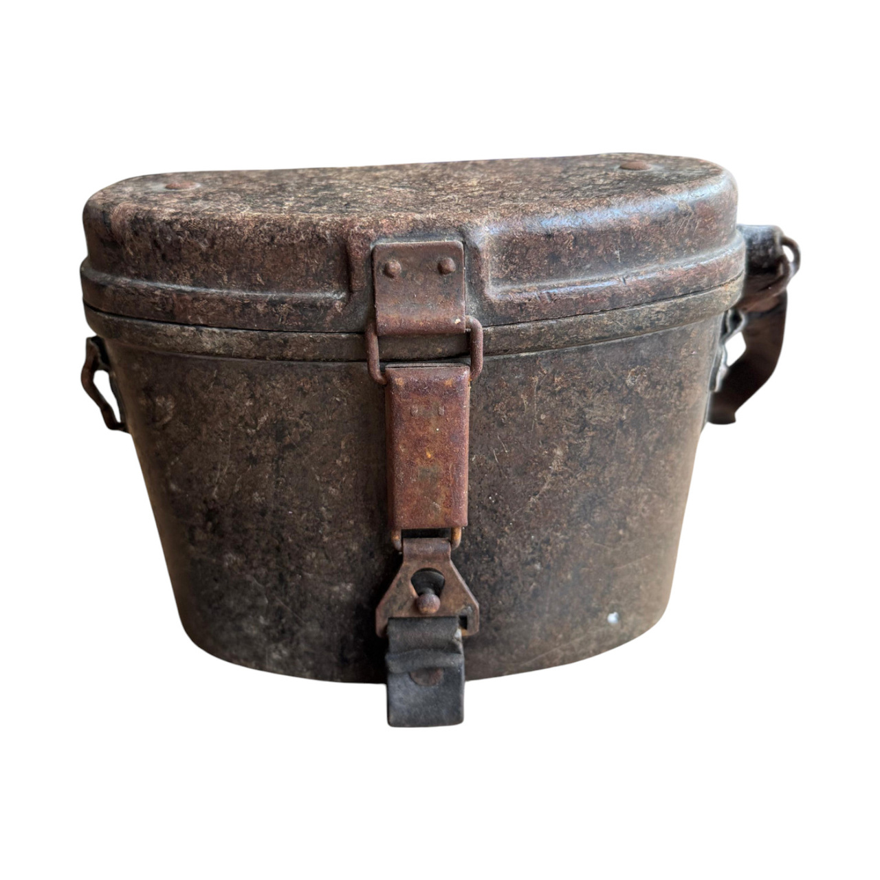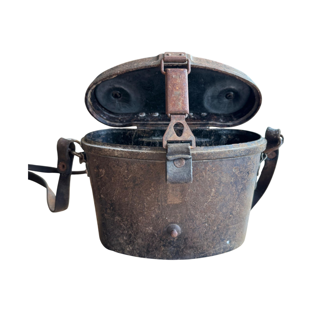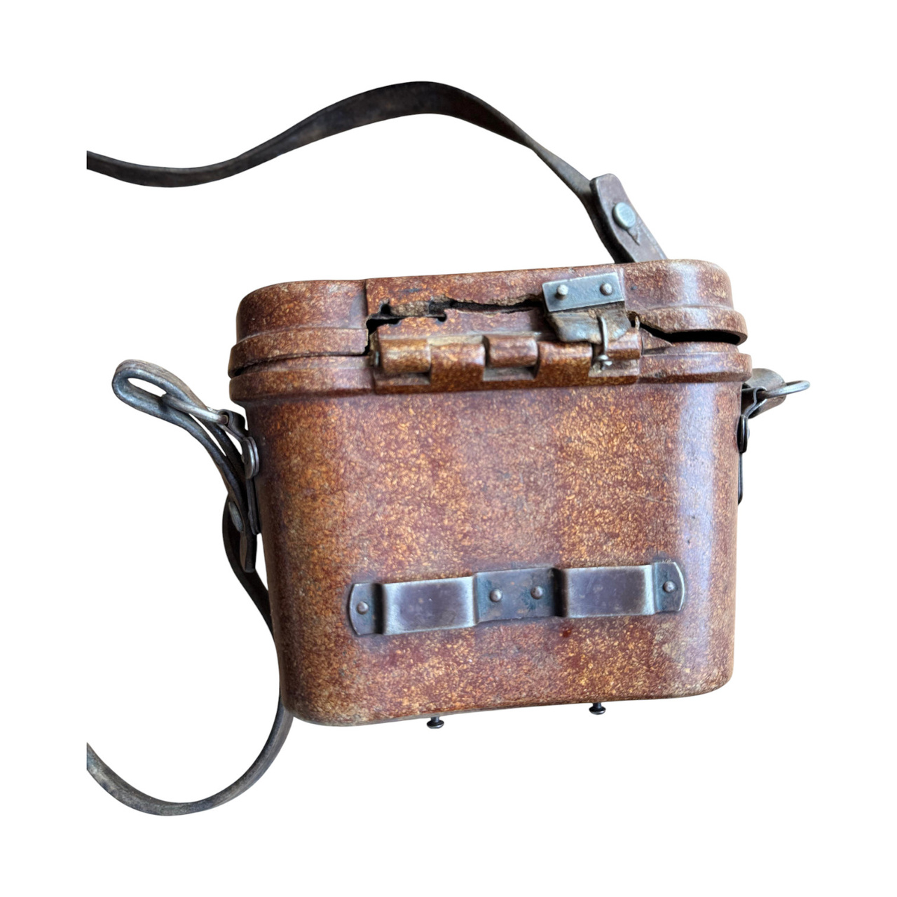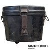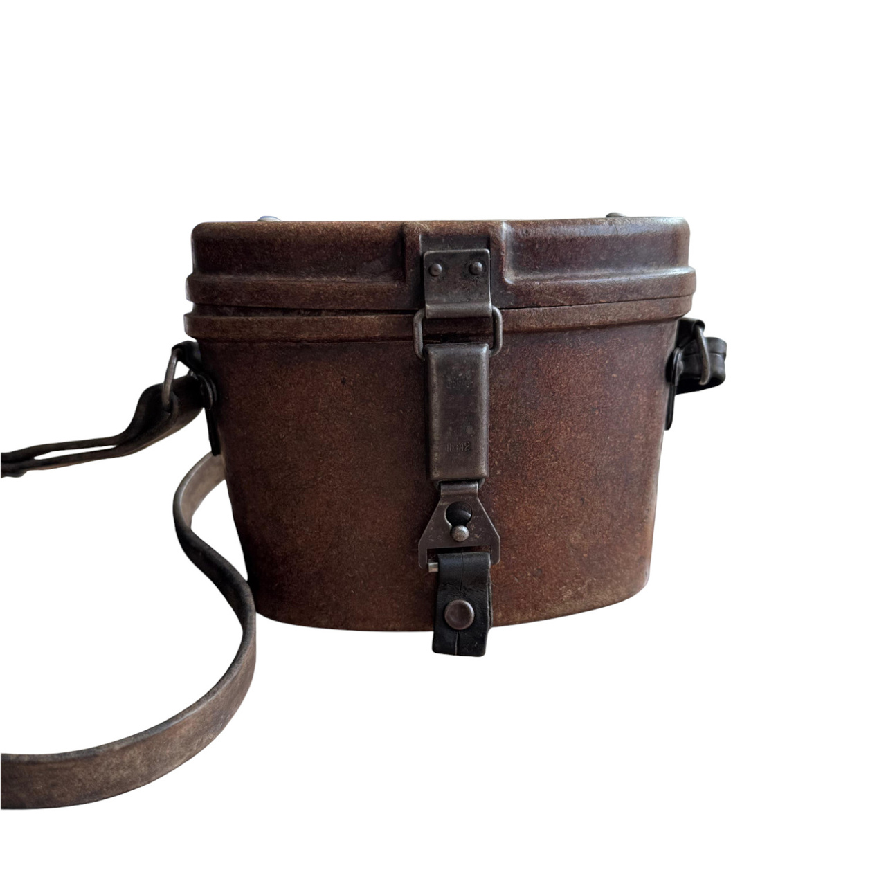 Ez a katonai távcsőtartó bakelitből készült – ez volt a világ első szintetikus műanyaga, amelyet 1907-ben Leo Baekeland vegyész talált fel. A kivételes ütés-, hő-, nedvesség- és kopásállósága miatt a bakelit széles körben használt anyag volt a hadseregben az 1930-as és 1970-es évek között. Ideális választás volt távcsőtartók, optikai alkatrészek, gázálarc-tokok és egyéb katonai felszerelések gyártására. Ma ezek a darabok ritka gyűjtői tárgyaknak számítanak, amelyek történelmi és esztétikai értékük miatt nagyra értékeltek.