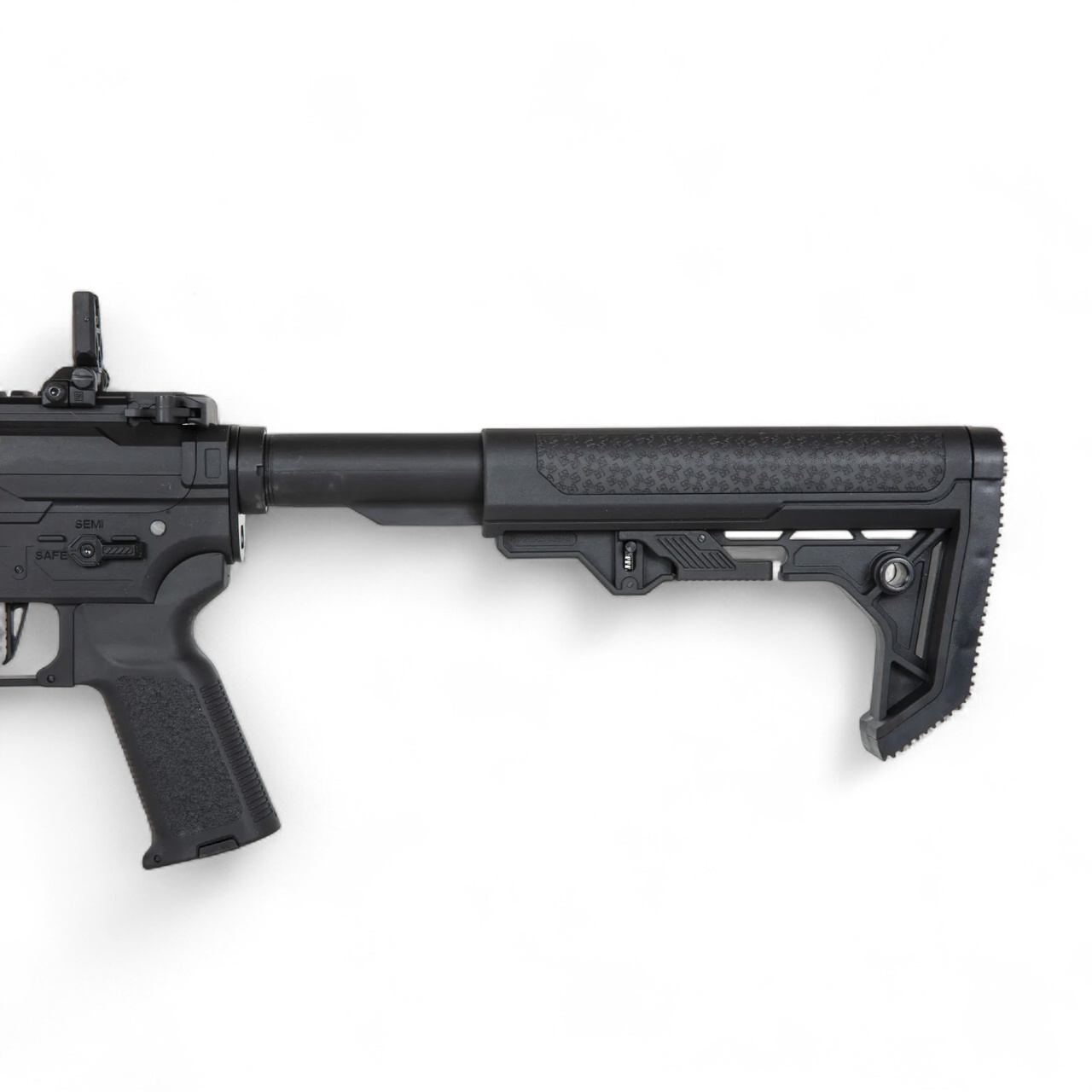 A cső a Specna Arms saját tervezésű, amely az esztétikai tulajdonságokat magas ergonómiával ötvözi. Minden egyes elemet a részletekre való odafigyeléssel készítettek és szereltek össze. A modell mindkét oldalán megnagyobbított manipulátorokkal (választó és tárkioldó) és funkcionális reteszzárral rendelkezik.