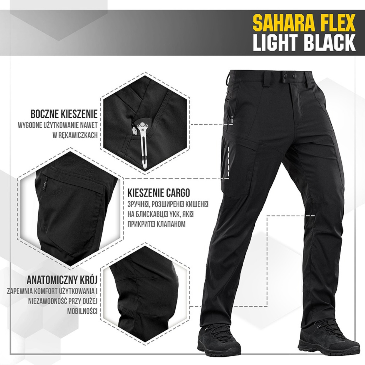 Az M-TAC SAHARA FLEX LITE PANTS ideális választás a meleg évszakra, mivel ötvözi a taktikai nadrágok funkcionalitását a modern dizájnnal, így mindennapi használatra is alkalmas. Az innovatív Sahara Flex Lite anyag, amely 93% nylonból és 7% elasztánból áll, kiváló szellőzést és rugalmasságot biztosít, lehetővé téve a szabad mozgást, ugyanakkor ellenáll az kopásnak és a napfénytől való kifakulásnak. A Flex Rip-Stop technológiával készült szövet szakadásálló, nem tartja meg a nedvességet és gyorsan szárad, így még a legforróbb napokon is kényelmes marad.