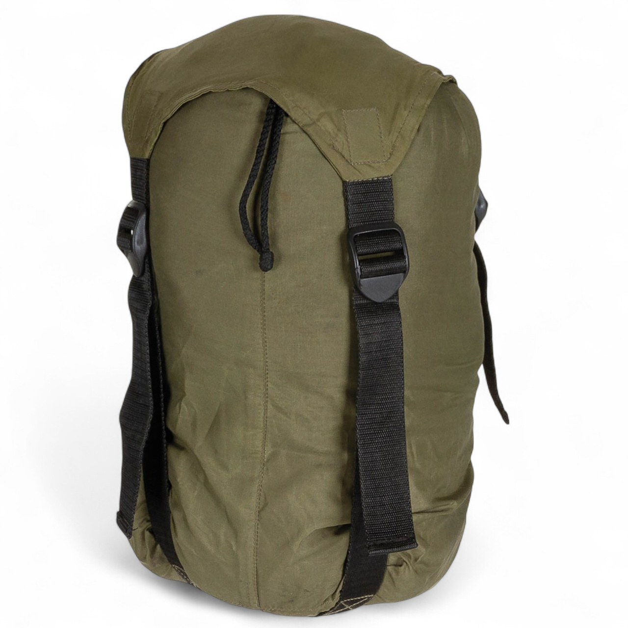 Használt, de teljesen működőképes. Katonai használatból eredő normál kopás nyomai előfordulhatnak. Első használat előtt ajánlott kimosni. Előfordulhat, hogy a kompressziós zsák csatjai hiányoznak vagy javítottak.