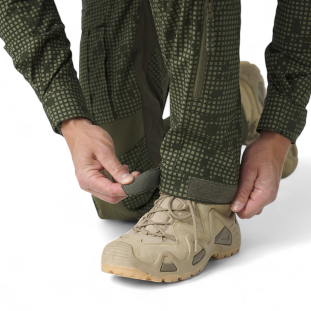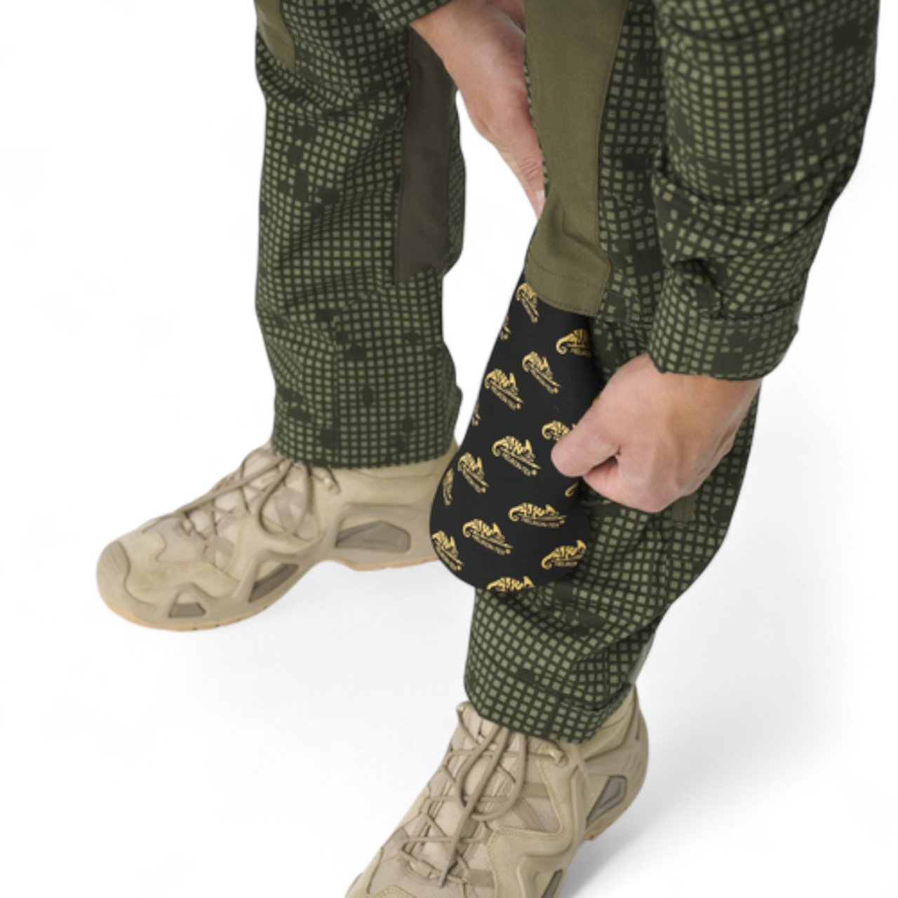 A térdek Cordura 500D-vel vannak megerősítve és védőbetéteknek kialakított zsebekkel rendelkeznek, míg a térd alatt és a lábfejnél elhelyezett további húzózsinóroknak köszönhetően a nadrág könnyen illeszthető a lábhoz.