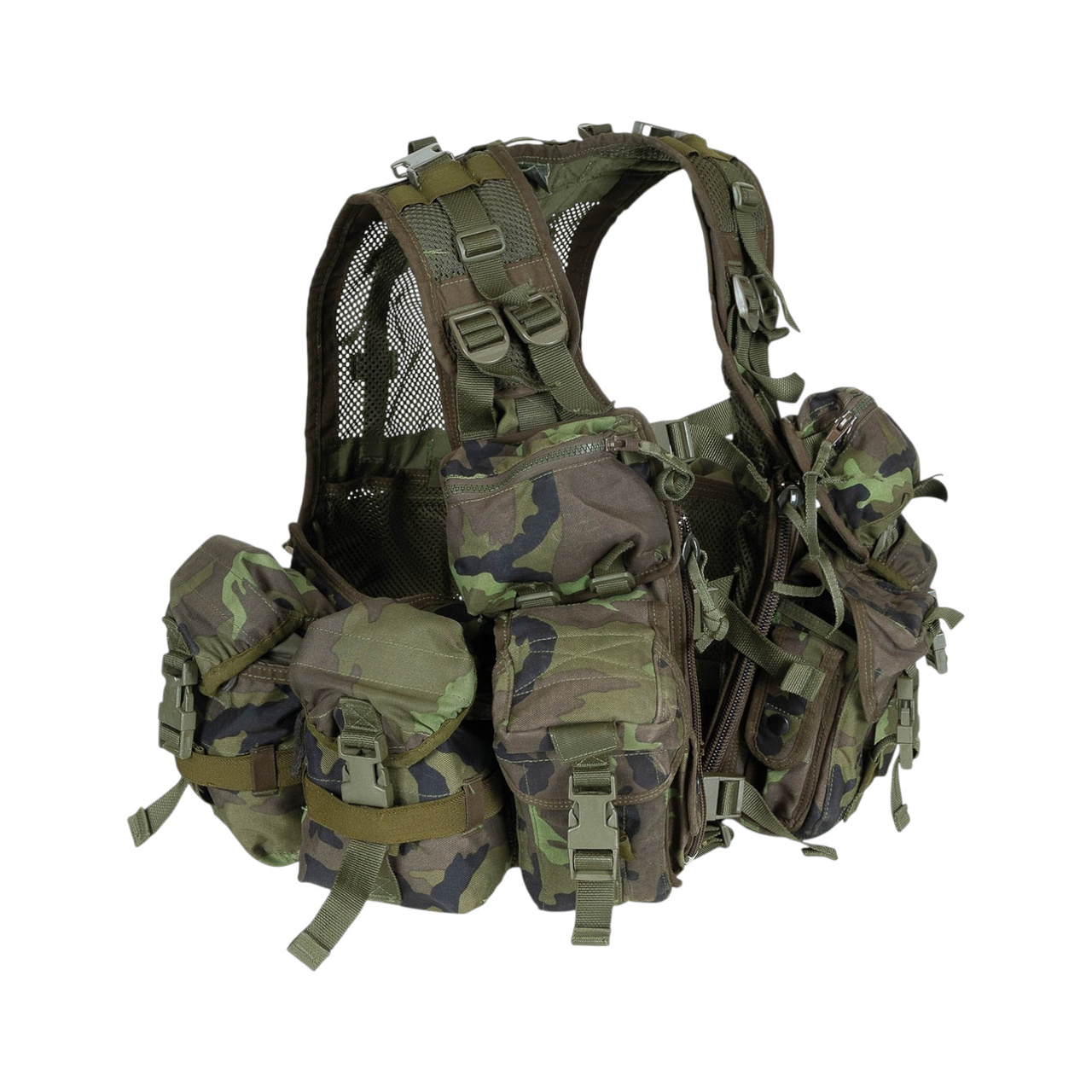 Ez az eredeti taktikai mellény, Universal 2007 modell, a cseh hadsereg feleslegéből származik, és harci felszerelés hordozására szolgál. Praktikus, tartós és teljesen állítható, intenzív használat mellett is funkcionális és kényelmes.