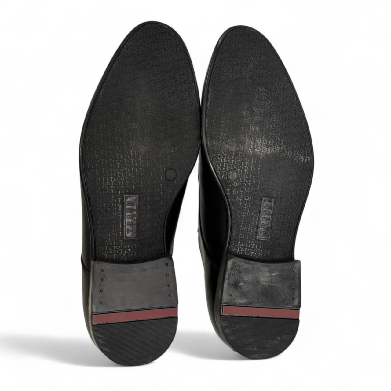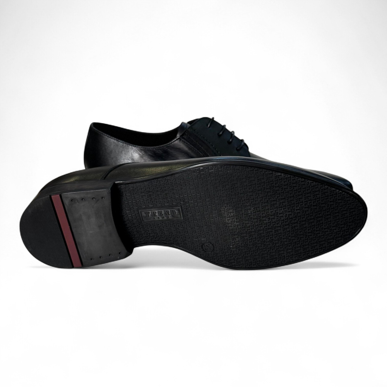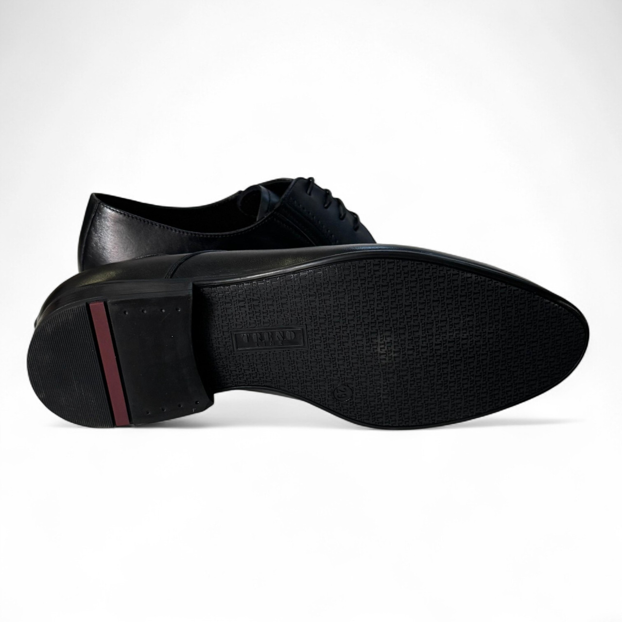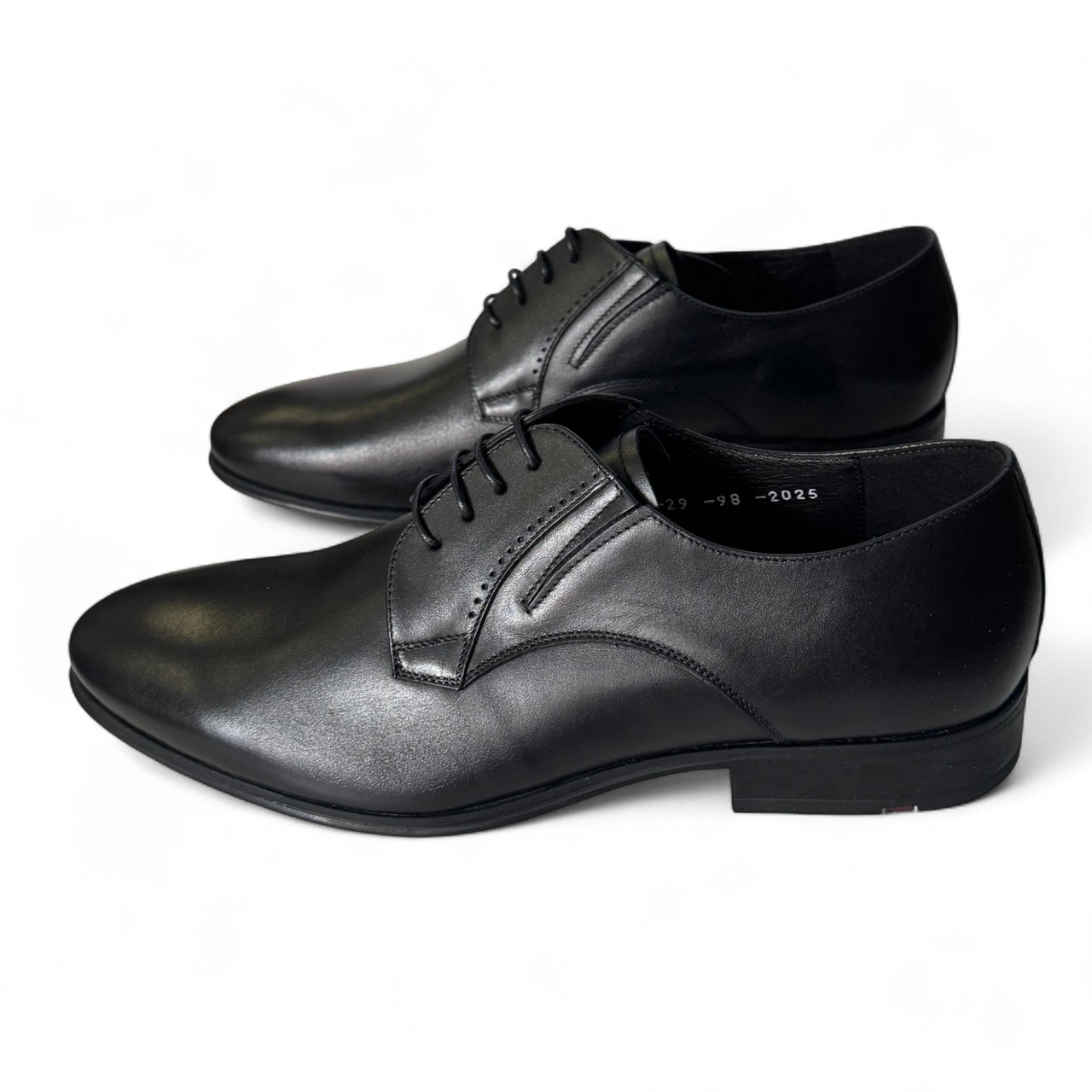 Klasszikus fazonú cipő, természetes fekete Vitello bőrből készítve, iskolai vagy munkahelyi mindennapos viseletre tervezve. Masszív modell elegáns kidolgozással és erős szerkezettel, egyenruhához is ideális.
