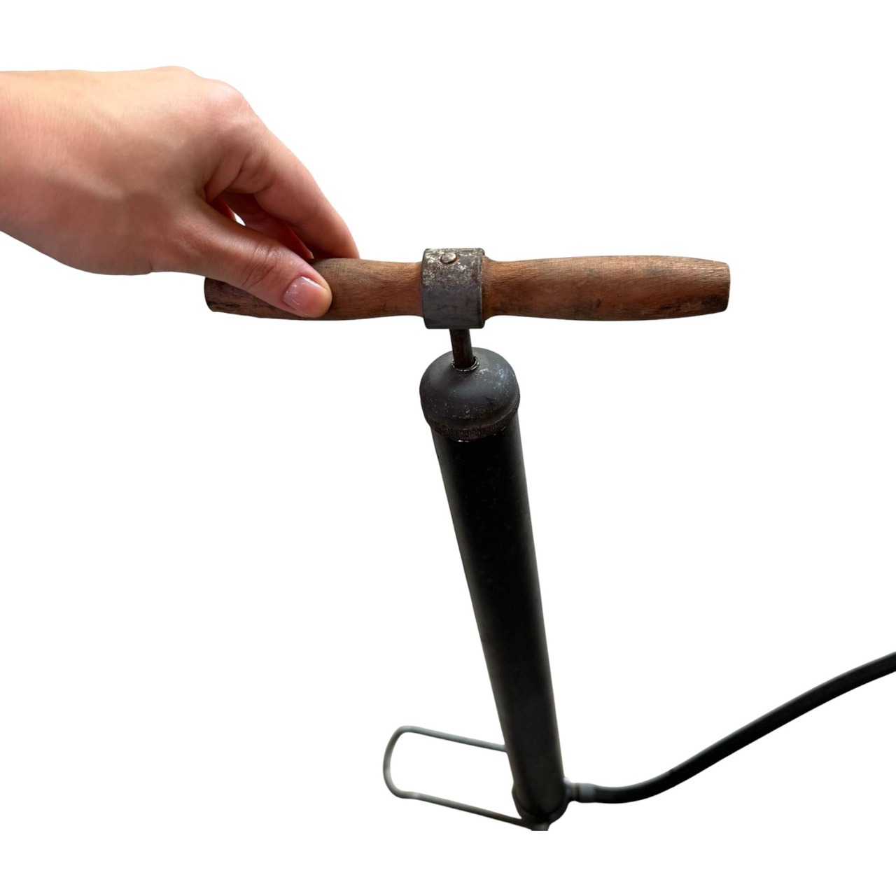 Eredeti kézi légpumpa a Román Hadsereg katonai feleslegéből, különféle felszerelések – például belsők, könnyű járművek abroncsai, matracok vagy labdák – felfújására használták.