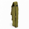 A felső fedél tépőzárral és állítható csattal is zárható, ami kettős biztonságot és gyors hozzáférést biztosít. A hátoldalán egy MOLLE rögzítőpánt található fém patenttal és négy MOLLE hurokkal, így sokoldalúan rögzíthető taktikai mellényekre, hátizsákokra vagy más moduláris rendszerekre.