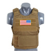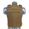 A melleny elején egy nagy tépőzáras panel található az azonosító foltok és egyéb kiegészítők rögzítéséhez. A hátoldalon külön nyakvédő rész kapott helyet. A csomag soft dummy (nem valódi) ballisztikus betéteket tartalmaz.
