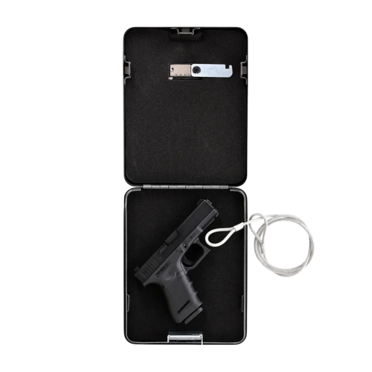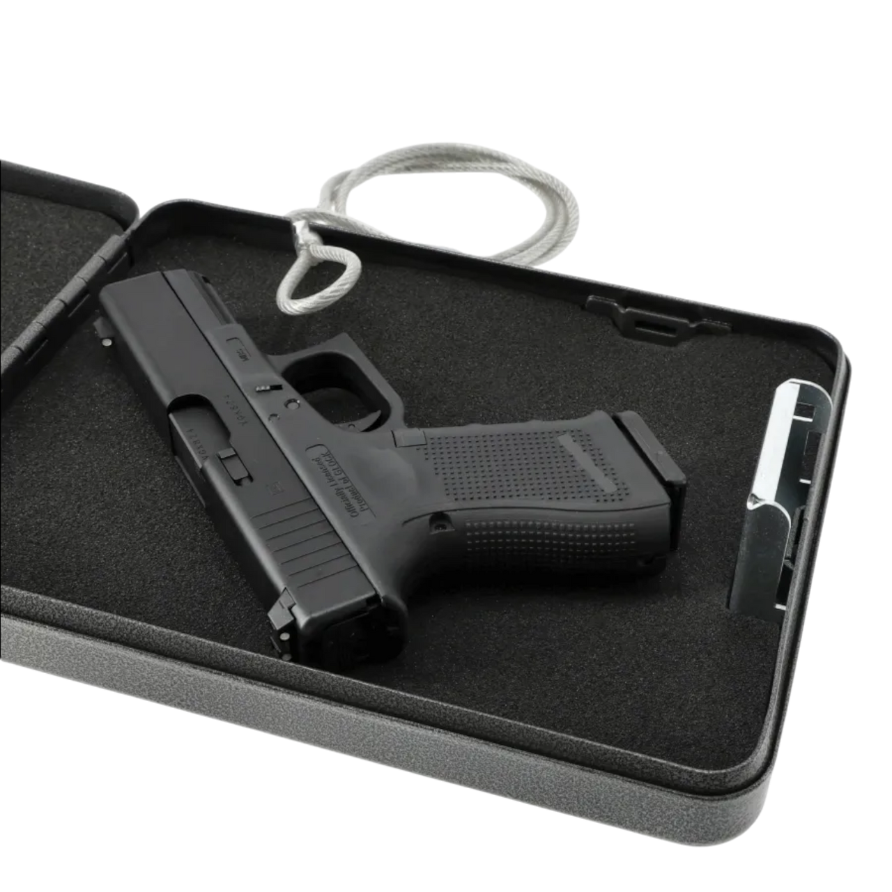Az Umarex Safety Box L acélból készült, fekete porfestéssel bevonva, a belső része puha habbal bélelt, amely megvédi a tárolt tárgyakat a sérülésektől.