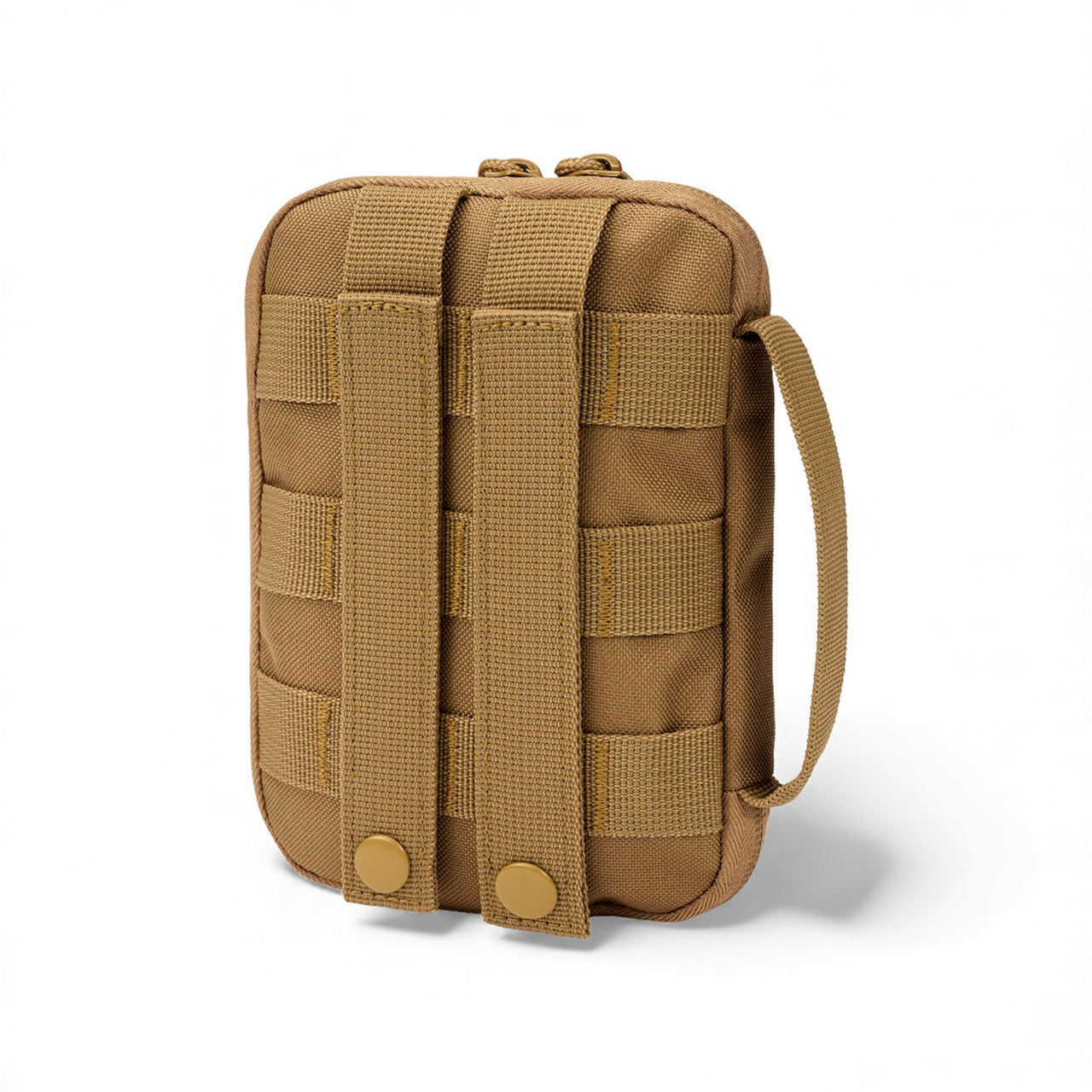 Kulcstartó tasak belső rugalmas pánttal és karabinerrel a kulcsok rendszerezéséhez. Fő cipzárral, zászlós címkével, egy kis külső cipzáras zsebbel, valamint MOLLE rendszerrel és PALS hurkokkal rendelkezik a felszereléshez való rögzítéshez.