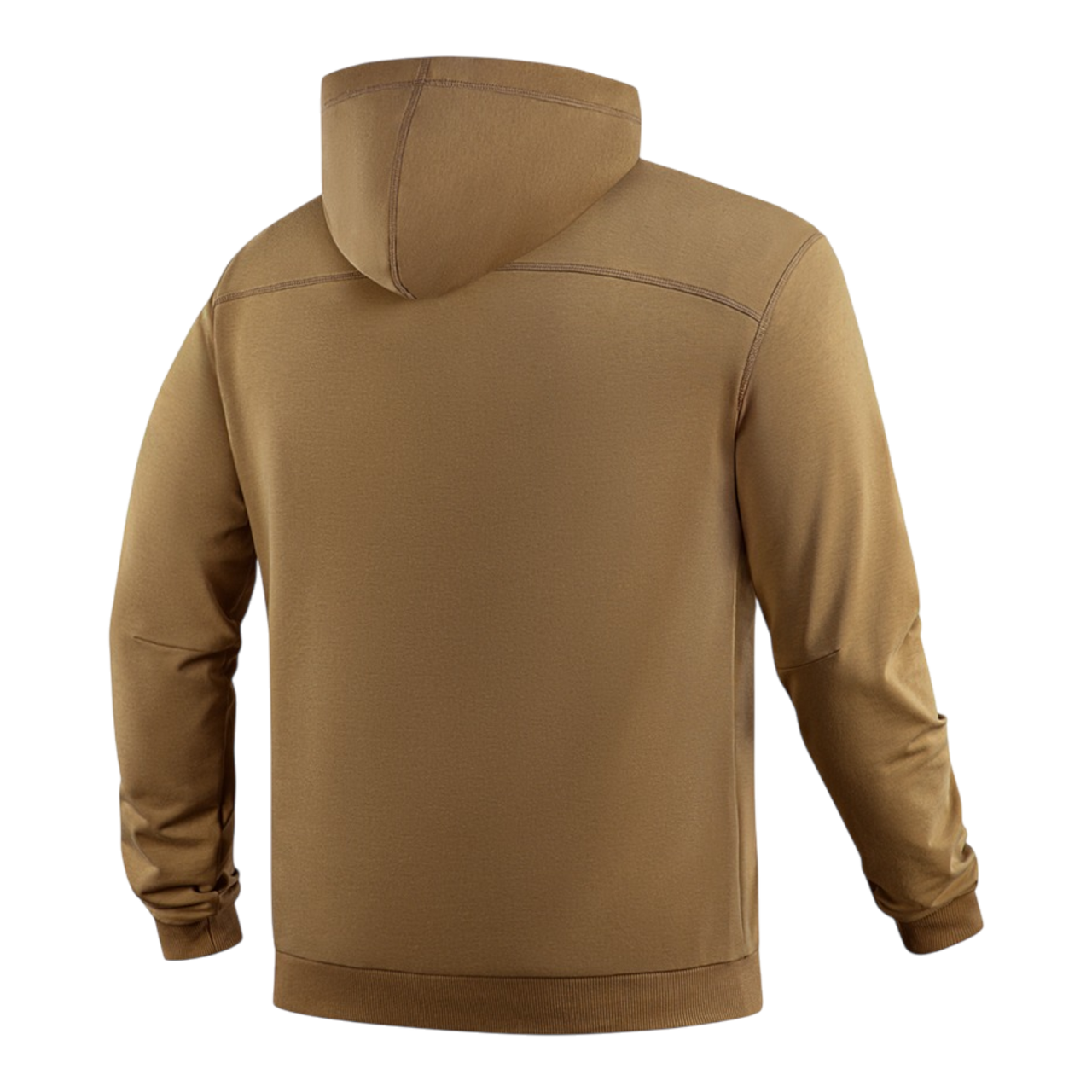Az M-TAC „Born By Revolution” kapucnis pulóver kényelmes szabást ötvöz kiváló minőségű anyagokkal, így tökéletes választás mindennapi viseletre vagy casual-taktikai stílushoz.