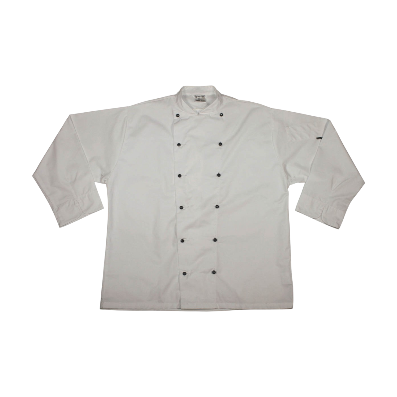 A klasszikus, fekete patentos gombokkal ellátott, kétsoros kivitel professzionális megjelenést biztosít, és lehetővé teszi az elülső rész gyors cseréjét szennyeződés esetén, ami elengedhetetlen részlet a HoReCa környezetben. A hosszú ujjú kialakítás extra védelmet nyújt munka közben, a laza szabás pedig egész napos mozgásszabadságot biztosít.