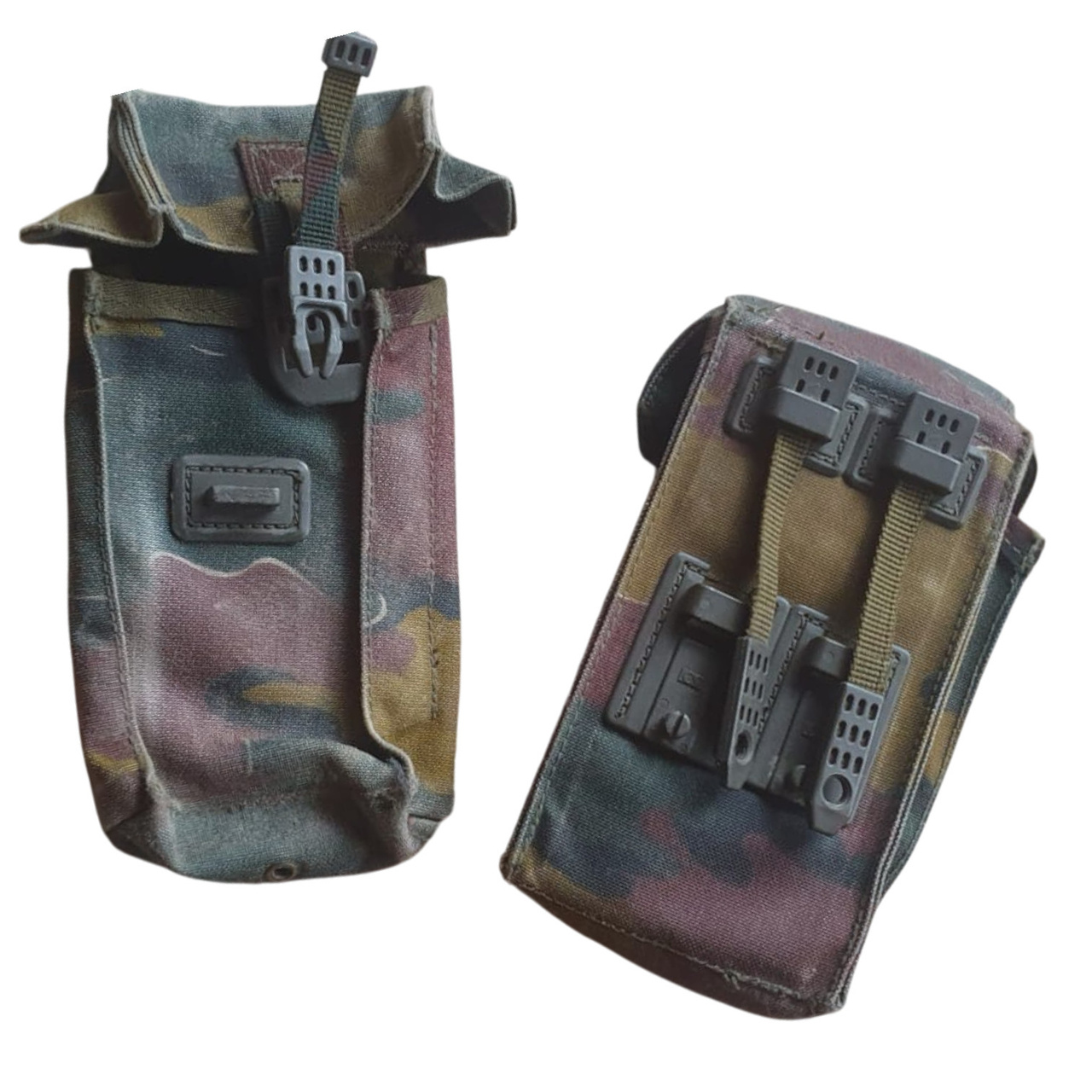 Ez az eredeti belga hadsereg lőszerzsákja kettős rekesszel rendelkezik, amely hatékony tárolást és gyors hozzáférést biztosít a lőszerhez. Hiteles katonai álcázásból készült, megbízható tartósságot és praktikus használatot kínál a terepen. Ideális gyűjtők, történelmi rekonstrukciók résztvevői vagy taktikai rajongók számára.