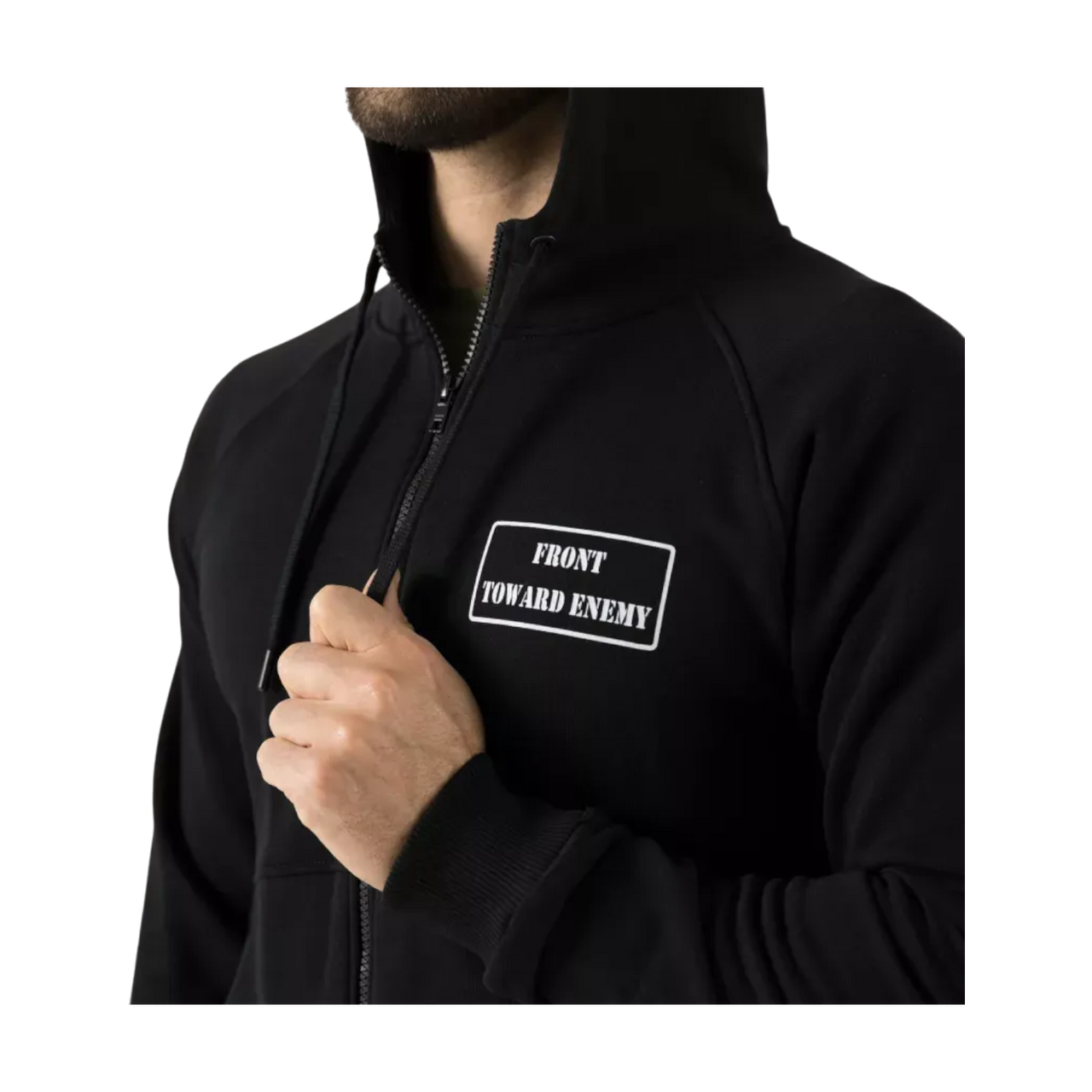 A Front Toward Enemy kapucnis pulóver tökéletes választás azok számára, akik személyiséget és taktikai elemeket ötvöző városi stílust keresnek. Könnyű és kényelmes, ez a teljes hosszúságú cipzáras modell ideális mindennapi viseletre, mozgásszabadságot és modern megjelenést kínál.